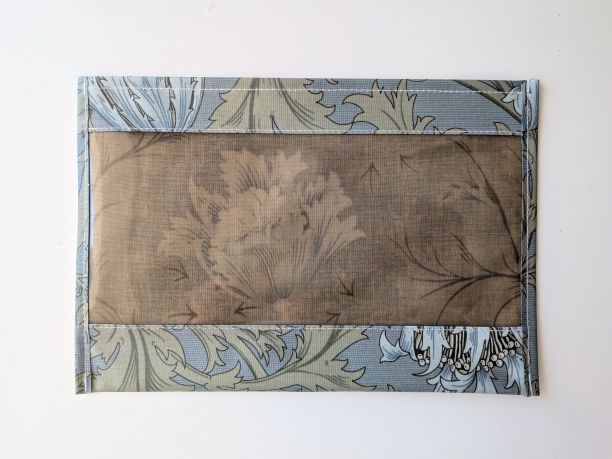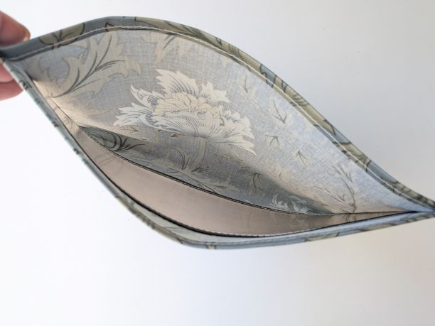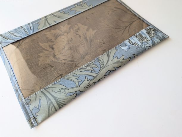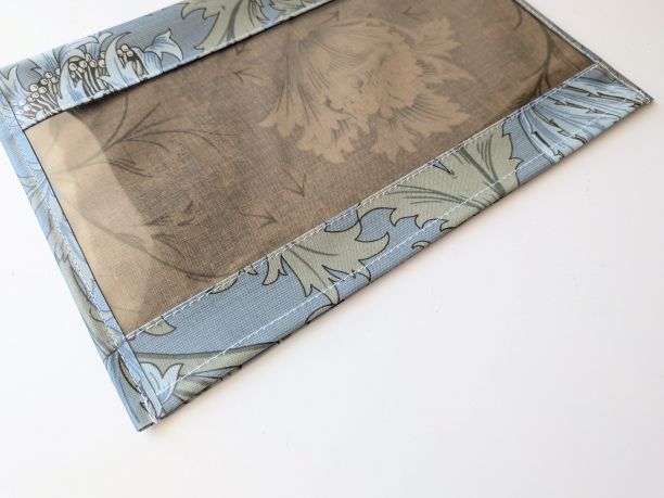 この生地はリバティのラミネートよりもやや固めでしっかりしており、大切な物をしっかり守るのに適しています。