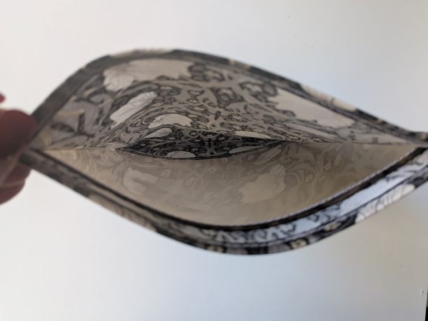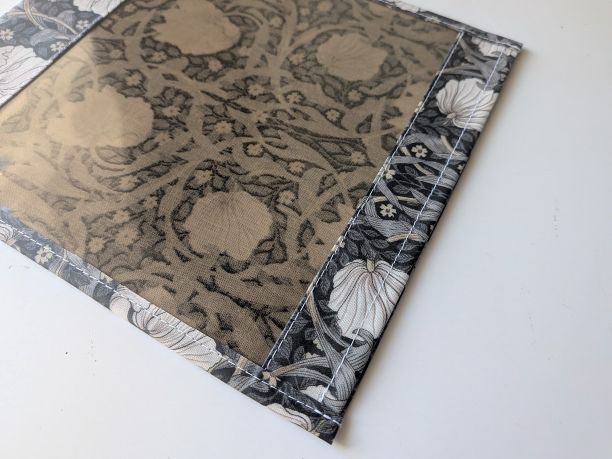 この生地はリバティのラミネートよりもやや固めでしっかりしており、大切な物をしっかり守るのに適しています。
