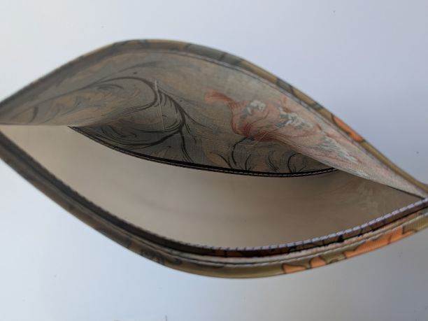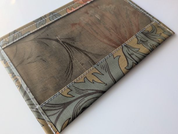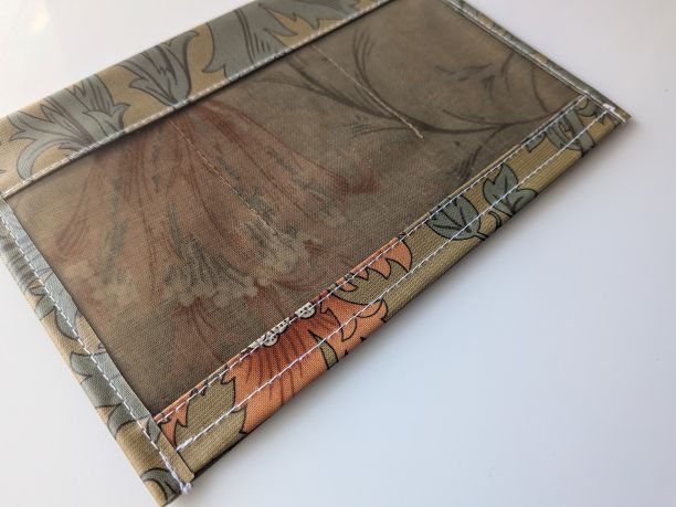 この生地はリバティのラミネートよりもやや固めでしっかりしており、大切な物をしっかり守るのに適しています。
