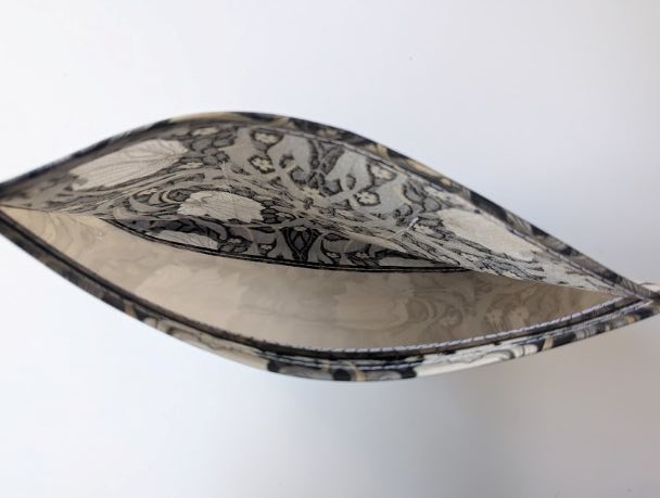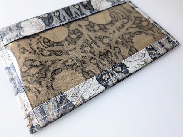 この生地はリバティのラミネートよりもやや固めでしっかりしており、大切な物をしっかり守るのに適しています。