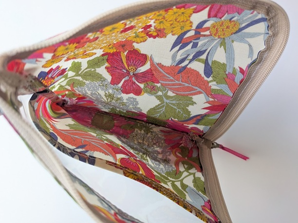 仕切り付きXS L字ファスナー クリアポーチ アンジェリカガーラ リバティ ♡大胆な大花