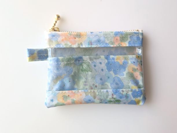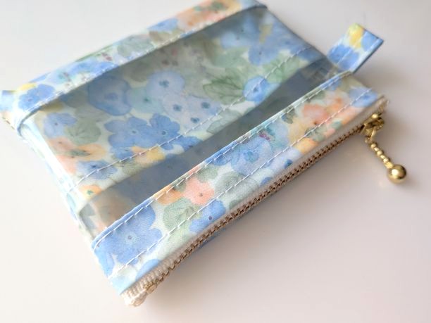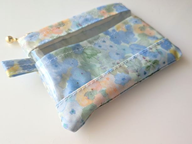 仕切り付きxxs-3 カードサイズ クリアポーチ ホリーホックス リバティ ラミネート ♡典型的なイングリッシュガーデンに咲く沢山のタチアオイからインスピレーションを受け水彩で描かれました