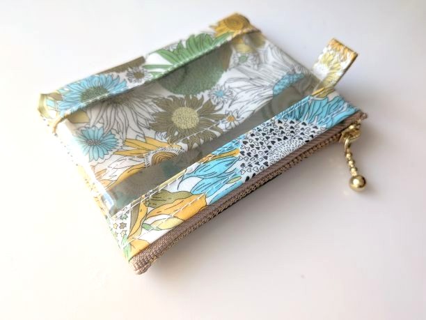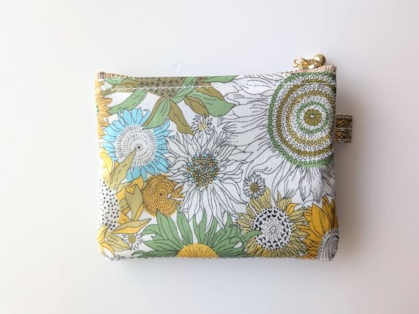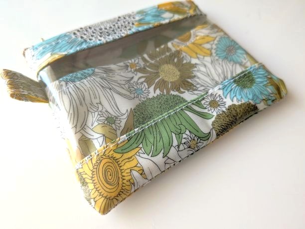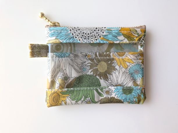 仕切り付きxxs-3 カードサイズ クリアポーチ スモールスザンナ リバティ ラミネート ♡大小さまざまなひまわり
