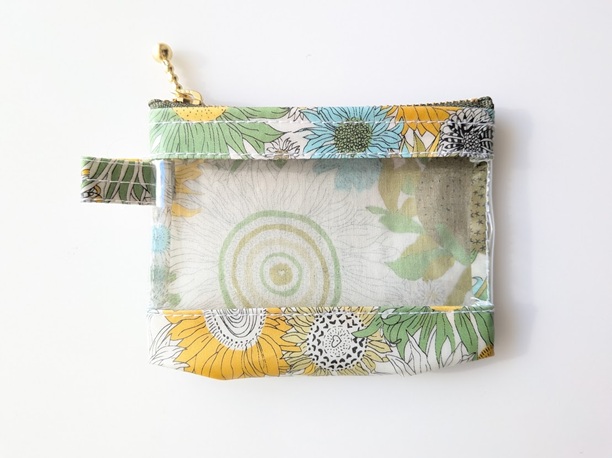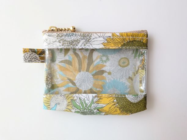 xxs-3 カードサイズ クリアポーチ スモールスザンナ リバティ ラミネート ♡大小さまざまなひまわり