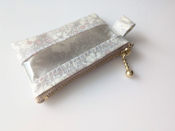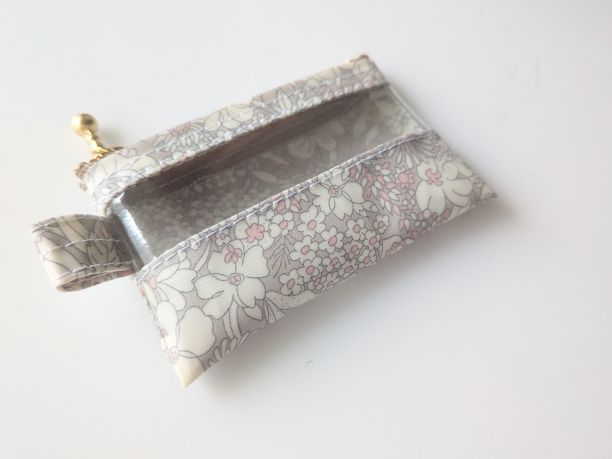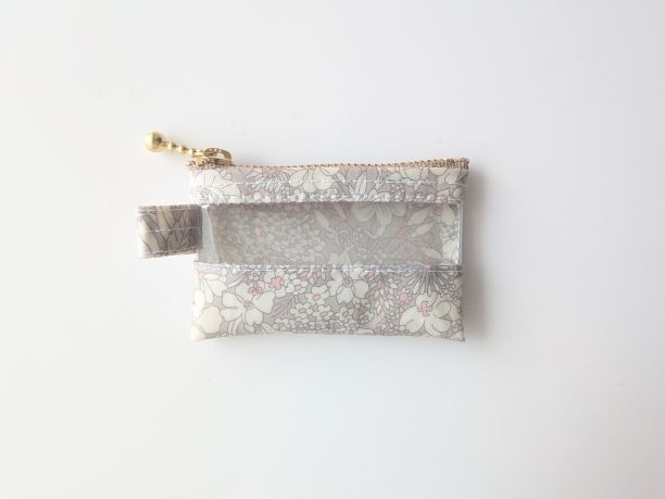 xxxs-3 9×5.5 クリアポーチ パトリックゴードン リバティ ラミネート ♡「Margaret Annie (マーガレット・アニー)」をポプリン向けとして単色風に描きなおした柄