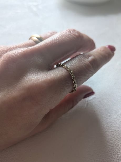 そこで、最も太い指(右手の人差し指)にはまる程度の長さにカットし、両端を整えてリングに仕立てることに。