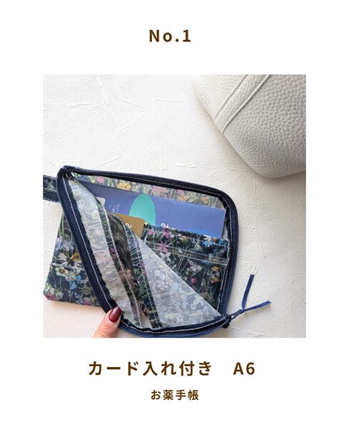 カード付きA6 L字ファスナークリアポーチ(お薬手帳サイズ)